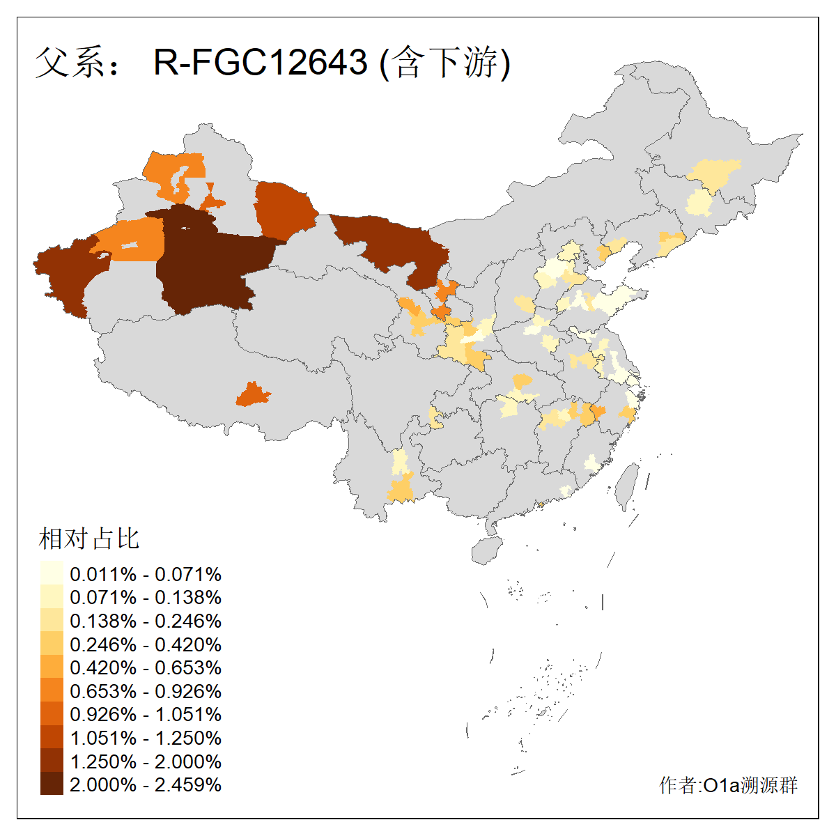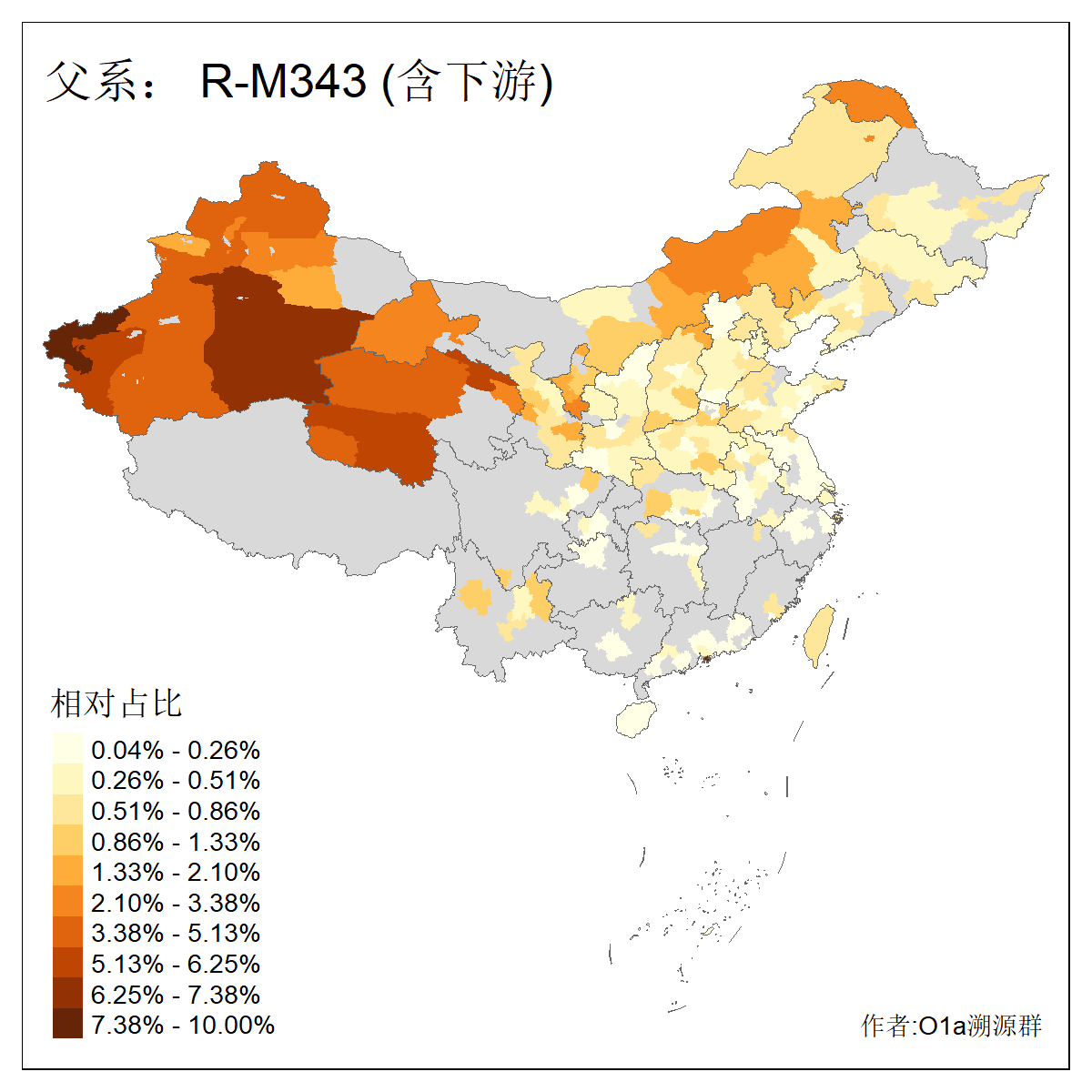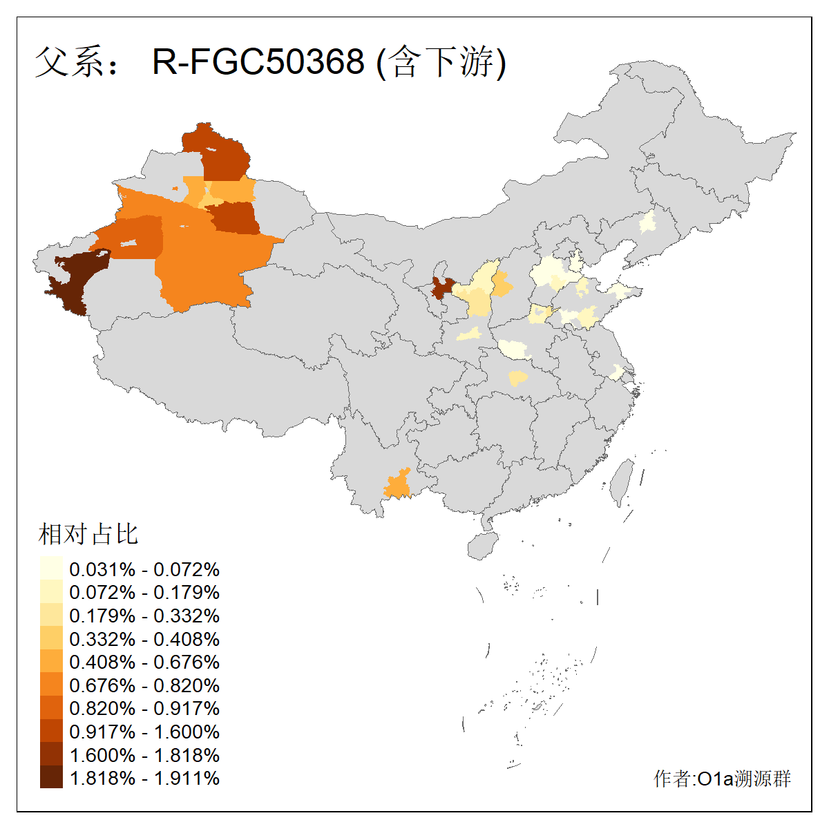 | R_R-Y482_R1_R-M343_R-L754 | 19600 | 0.301% | 677人(含下游) 张:46 李:37 王:36 马:35 刘:25 杨:21 丁:12 曹:12 苗:12 安:10 韩:10 白:8 艾:8 赵:8 ![]() | 1人(不含下游) 孙:1 ![]() |
