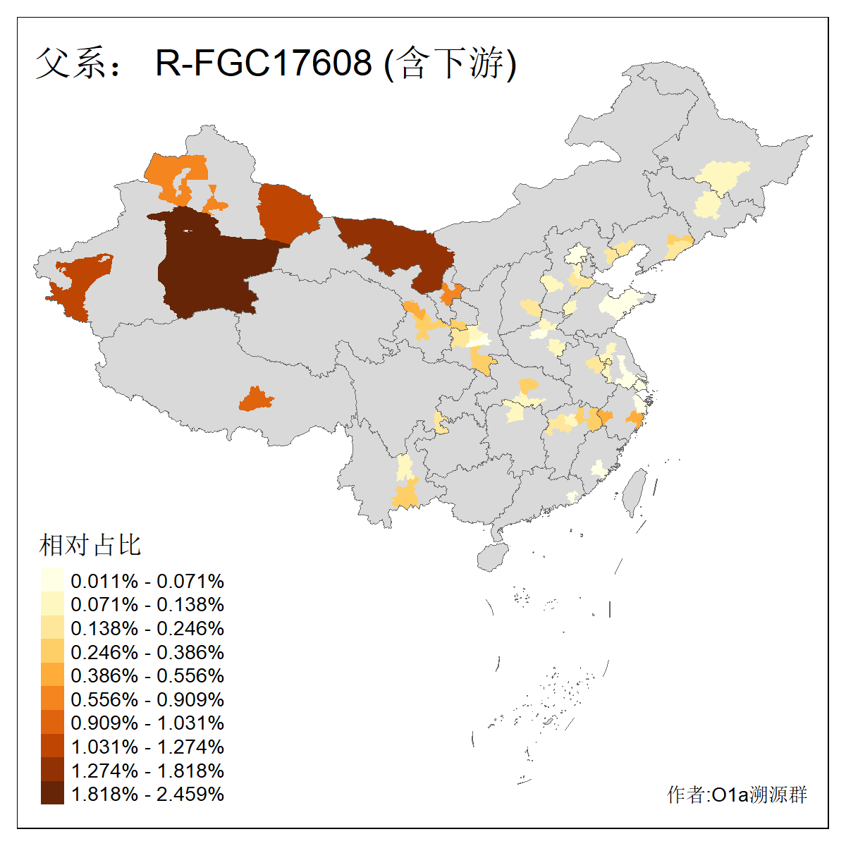 | R_R-Y482_R-M479_R-M124_R-FGC22607_R-P267_R-Y12100_R-FGC12643_R-Y8763_R-FGC17608_R-FGC18148 | 8150 | 0.037% | 80人(含下游) 张:16 马:8 王:4 陈:4 康:3 李:3 刘:2 宋:2 常:2 杨:2 祖:2 米:2 翦:2 艾:2 ![]() | 6人(不含下游) 刘:1 宋:1 石:1 郑:1 马:1 高:1 ![]() |