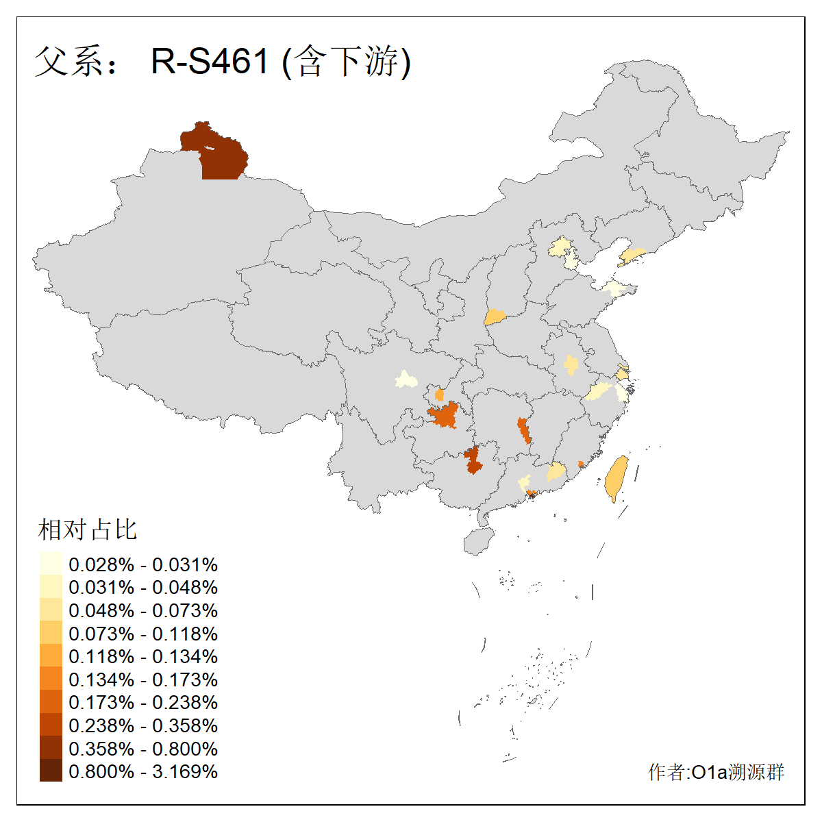 | R_R-Y482_R1_R-M343_R-L754_R-L761_R-L389_R-P297_R-M269_R-L23_R-L51_R-P310_R-L151_R-M405_R-S263 | 3940 | 0.009% | 21人(含下游) 杨:3 倪:1 吴:1 羊:1 老:1 郭:1 钟:1 雷:1 高:1 ![]() | 1人(不含下游)![]() |